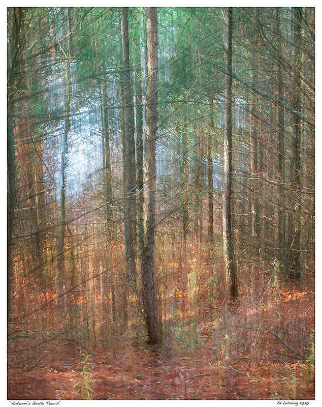 Ed’s work is significantly characterized by a painterly, impressionistic approach, all done in camera using Intentional Camera Movement (ICM). This technique transforms traditional landscape photography into abstract visual narratives that emphasize light, texture, and mood. His goal is not just to document a scene, but to evoke the feeling of being present in that moment. He also captures traditional landscapes and often enhances these images further by printing on large, brushed aluminum panels to add further depth and energy to the image.